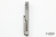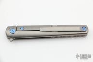 This MS3 Manhattan Special by Michael Zieba features a blasted blade with notched thumbrest and flipper. The handle has a blasted titanium frame with matching tip up clip and anodized titanium hardware, has stainless steel lockface insert. Rides on bearings, nice detent, lockup and blade seating.  Comes with padded zippered and COA dated 8-31-19.  Excellent condition.