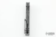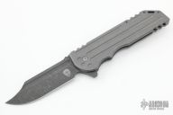This War Ready War Bowie (#4 of 10) by Alpha Hunter Tactical features an acid/stonewash finish clip point blade with notched thumbrest and fullers that opens/closes effortlessly on caged bearings. The handle is stonewash finished titanium with a titanium tip up clip and backspacer. The blade is centered when closed and locks up with no play. Comes with nylon zippered case and COA. Excellent condition.