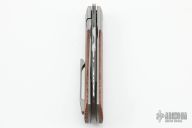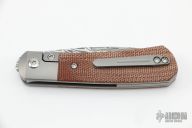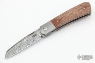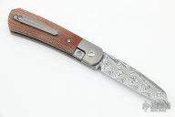 This Apache Front Flipper by Enrique Pena features a Damasteel blade with a front flipper and notched thumbrest. The handle has titanium bolsters, natural canvas micarta scales with a titanium backspacer and matching tip up pocket clip. Includes a Pena X-Series padded box.  Excellent condition.