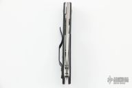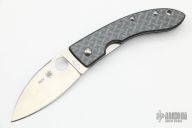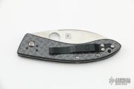 This Lum Chinese folder from Spyderco has a satin finished blade with thumbhole and false top edge. The handle has carbon fiber scales, stainless steel liners, and a black up or down reversible stainless steel clip. Comes with original box and papers.  Excellent condition.