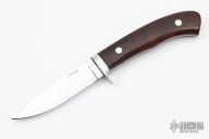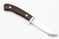 This Model 2 by Wayne Hendrix features a mirror polished drop point blade with .122" blade stock and .845" blade depth, full tapered tang construction. The handle has a stainless steel guard and ironwood scales over black liners. Excellent condition.