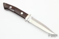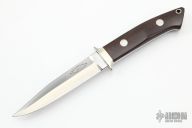 Robert Waldorf Loveless (January 2, 1929 – September 2, 2010), a.k.a. Bob Loveless or RW Loveless, was an American knife maker who designed and popularized the hollowground drop point blade and the use of full tapered tangs and screw-type handle scale fasteners within the art of knifemaking. A hunting knife on the table of nearly any American knifemaker today will show the influence of knifemaker Bob Loveless. In the beginning he turned the knife industry on its ear, and made modern handmade knifemaking possible. He was at the beginning of everything: The Knifemaker’s Guild, drop point hunters, high quality steels, custom designs, How to Make Knives books, the Japanese Knifemakers Guild, the rise of Japanese cutlery manufacturers, utilizing handmade designs for American manufacturers. You name it and Loveless has had a hand in it. He is cited by other knifemakers and collectors as one of the most innovative custom knife makers in the world. Inducted into the Blade Magazine Cutlery Hall of Fame in 1985.