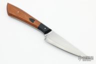 This Kitchen Helper by Marko Zagar features a San Mai Damascus blade with .191" blade stock and 1.044" blade depth, full tapered tang construction. The handle has black G-10 bolsters and escutcheon, bloodwood scales. Comes with a wooden presentation box and COA dated 4/2022. New from maker.