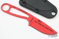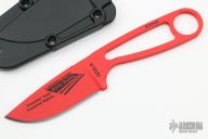 This Isula by Esee Knives features a red powder coated blade with a notched thumbrest, .164" blade stock and 1.03" blade depth, full tang construction. Comes with molded plastic sheath. Excellent Condition.