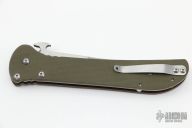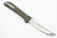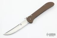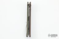 This Sinners Reaper linerlock folder by Rob Dalton is a one off custom. It features a satin finished blade with notched thumbrest and false top edge. The handle has brown G-10 scales, titanium liner and tip up clip. Nice detent and lockup. Excellent condition.