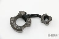 This Knucleus Executive Paperweight from Vosofferyn is crafted from 0.775" thick titanum with a laser engraved finish. Also features a Knucleus Jr. lanyard bead on attached lanyard. Both can be used as a bottle opener. Excellent condition. one of 6 in this configuration as far as we have been told.