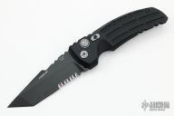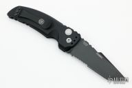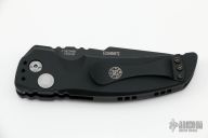 This EX-A01 by Hogue Knives is an Allen Elishewitz design, it features a black tanto partially serrated 154CM blade with notched thumbrest. The handle is black aluminum, tip up or down reversible black stainless steel clip. Has safety. Comes with original box and papers. Excellent condition.