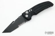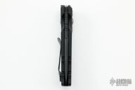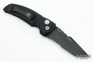 This EX-A01 by Hogue Knives is an Allen Elishewitz design, it features a black tanto partially serrated 154CM blade with notched thumbrest. The handle is black aluminum, tip up or down reversible black stainless steel clip. Has safety. Comes with original box and papers. Has a few light scuffs, otherwise excellent condition.