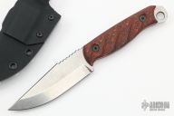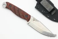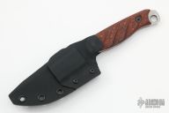 This Crow Jr by Half Face Blades features a tumble finish blade with a notched thumbrest, .141" blade stock, 1.299" blade depth, full tang construction.  The handle has Mars Fat Carbon scales.  Comes with a kydex sheath with clip. NewCondition.
