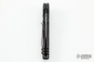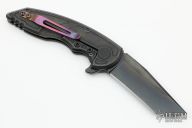 From Hoback Knives: The A8 is the down-home, hard-work inspired folder. We built this knife to be at home in your pocket, so it’s always where you need it and you don't have to think about it. It just plain works. We took the A10 folder and scaled it down to be much more pocket-friendly, while still being large and in charge! The A8 still sports a 3.25” long blade like its A10 big brother, but it’s much narrower and slides into the pocket with ease. And anytime you see the word “Slimline,” you know the knife will be lighter, faster, and thinner for even more ease of carrying. It will boast the same strength and precision engineering you have come to expect from Jake Hoback Knives. SPECIFICATIONS: Blade: CPM-20CV, 3.25 Length, .1875 Thickness, Frame: Grade 38 Titanium, .1875 Thickness, Black DLC Fallout blade finish. Closed Length: 4.66" Open Length: 7.796" Weight: 4.7oz. Other Features: Pivot Thrust Bearings HRD (Hoback Roller Detent) Engineered Internal Lightening Pockets (less weight, same strength) Standard Sizes on all Screws for Ease of Replacement Hardened Steel Bearing Races. Comes in the original wooden box with certificate of authenticity and allen tools needed to disassemble knife. Has a couple light scuffs, otherwise excellent condition. Comes with a custom anodized titanium clip installed. Comes with two extra clips.
