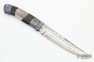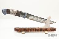 My name is Pär-Olof Eklund, and I live in Skellefteå, a city in the north of Sweden. My first knife was made in the beginning of 1980. Beside the blades, which I buy from the most skillful smiths in this part of Sweden, I do all the work with the knives on my own. During the dark winter months I make the sheaths and the handles, sew the leather and engrave when the knives have got their final design. I use traditional Nordic materials, antler from reindeer and moose, curly grained root from birch and sallow, and leather from reindeer and cattle. The engraving is traditionally carved with knife, and colored with bark from alder-trees or oil color. I am a member of The Swedish, Norwegian and Danish Knife Associations aswell as The Knifeguild of Skellefteå and Grundsunda.
