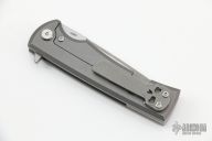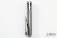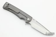 This Chaves Ultramar Street Liberation features a tanto belt finished blade with the Chaves logo. The handle features a stonewashed titanium frame with a matching skull pocket clip (positioned for tip up carry), and a titanium backspacer.  Includes a secondary titanium pocket clip. New From Maker!
