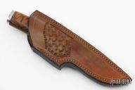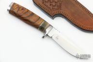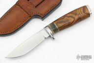"In 1973 I started working for the British Columbia government as a wildlife control officer, hunting problem wildlife. Later I worked as a conservation officer. All my life I have hunted, fished, trapped and gunsmithed as a hobby, and knives have always been an important part of my life, from my bicycle trap line as a kid, to skinning problem wildlife when I worked as a wildlife control officer, to dressing the moose or deer I hunted for the freezer. I made my first knife in 1976, and in 1996 my wife Judy and I decided to go into the knife business full time. I make mostly upscale working hunting knives with a bowie or miniature now and again. Each knife is a unique combination of materials. Although I have used many different steels, I have found 440-C to be the most versatile. Heat treated to 57 Rockwell for optimum edge retention and ease of sharpening, this steel has proven itself in both working and collector knives. Other steels will be used for special order, and I enjoy using Damascus for collector pieces."
