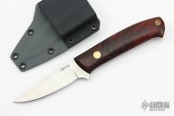 This Model 4 Bird and Trout by Dan Crotts features a satin finished blade, .089" blade stock and .830" blade depth, full tang construction. The handle has cocobolo wood scales with a single brass pin and lanyard hole. Comes with a kydex sheath with belt loop for horizontal carry. New from maker.