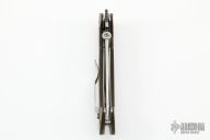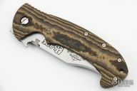 This CQC-13 from Emerson Knives features a stonewashed clip point blade with false top edge, knurled thumbdisk and patented Wave feature. The handle has paper micarta scales and a tip down stainless clip and a lanyard hole at the base. Includes Original Box.  Hand Signed by Ernie.  S/N's may vary.  Excellent Condition.