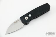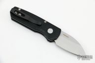 The Runt 5 by Pro-Tech Knives features a tumbled sheepsfoot style blade. The handle features a textured black aluminum handle with a black tip up stainless steel pocket clip. Pearl Push Button. New from maker!