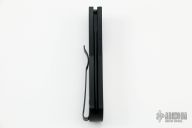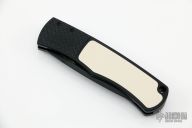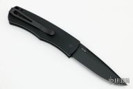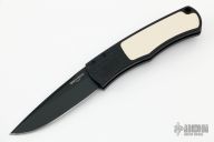 This BR-1.7 Whiskers Design by Protech Knives features a black blade with false top edge. The handle has a black aluminum frame with a black aluminum bolster release, ivory paper micarta inlay, stainless backspacer and tip up black stainless clip. Lanyard hole at the butt. Comes with original box and papers. New from maker!