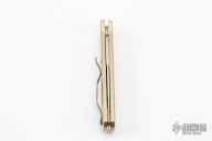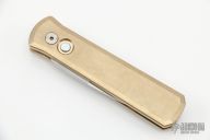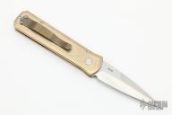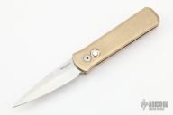 This 7110 Godson from Pro-Tech Knives features a satin finished blade with swedge. The handle has a stonewashed bronze frame with matching tip up pocket clip and a mother-of-pearl butto. New From Maker! Comes with original box and papers.