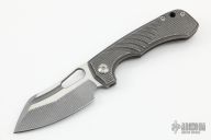 This Blood and Thunder V3 by Jason Stout features a milled bevel blade with fullers and thumbhole. The handle has a milled and tumble finished titanium frame with matching tip up pocket clip and a satin finished stainless steel backspacer. Nice detent, lockup and blade seating. Comes with a zippered case and COA dated Bladeshow 2022. New from maker at the 2022 Blade Show.