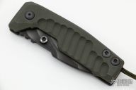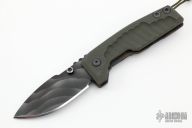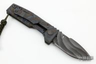 This Metro framelock flipper by Crusader Forge features a "3D Socom" finish blade and notched thumbrest, fuller and flipper. The handle is comprised of a matching titanium frame and contoured g10 with a lanyard hole at the butt. Matching titanium clip positioned for tip up carry. Nice detent, lockup and blade seating. Comes with original box and COA. Excellent condition.