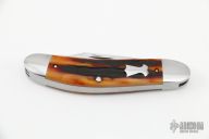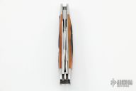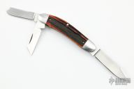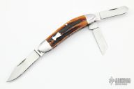 This 3-Blade Sowbelly by Luke Swenson features hand rub satin finished blades with nail nicks. The handle has stainless steel bolsters with integral liners, stag covers, stainless steel escutcheon, springs and liners, has half-stops, flush in all positions. Comes with a zippered case. New from maker at the 2022 Blade Show.