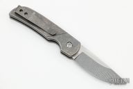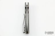 This Ridgeline Auto by Brian Fellhoelter features a tumble finished blade with milled bevels, and notched thumbrest. The handle has a stonewash finished titanium frame and a tip up titanium clip. Marked MAGNACUT on blade. New from Maker at Blade Show 2022.