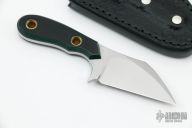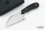 This Redux Micro Cleaver by Rainy Day Knives features a blasted wharncliffe blade with .139" blade stock and 1.095" blade depth, full tang construction. The handle has vintage paper micarta scales . Includes leather sheath with an Ulti-clip and COA. New from maker at the 2022 Blade Show.
