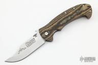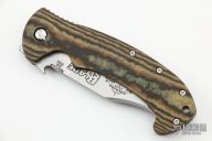 This CQC-13 by was hand ground by Ernie Emerson, it features a satin finish blade with notched thumbrest, thumbdisc and wave feature. The handle has Richlite scales, titanium liners, stainless steel clip, tip up carry. Comes with original box and papers. New from maker at the 2022 Blade Show.