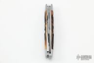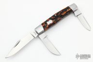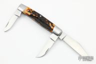 This slipjoint by Jim Dunlap features 3 hand rub satin finished blades with nail nicks. The handle has stainless steel threaded and fluted bolsters, stag covers, stainless steel liners, stainless steel springs. Has half-stops, flush in all positions. Comes with a zippered case and COA. New from maker at the 2022 Blade Show.