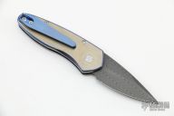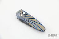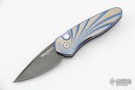 This custom Sprint side-opening automatic by Pro-Tech Knives features a Vegas Forge Herring Pattern Damascus blade.  The handle has a milled and anodized titanium frame with a matching tip up pocket clip.  Mother-of-pearl push button.   Includes the original box and papers.  New from maker!