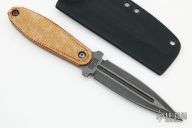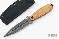 This Stengah Dagger by Jason Stout features a double edged blade with fullers and milled bevels, .155" blade stock and .990" blade depth, full tang construction with milled Maple Richlite scales. Coems with a kydex sheath and COA dated 2022. New from maker at the 2022 Blade Show.
