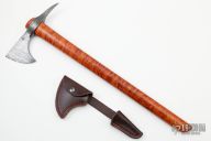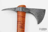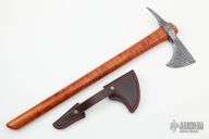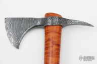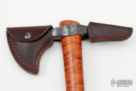 This tomahawk by Andrew K Smith features a Damascus head with a 2.5" spike at the rear. Has a 20" curly maple shaft. Comes with leather blade cover with snap. This is very nice! New From Maker!