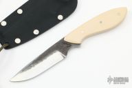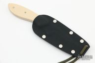 This neck knife by Murray Carter features a laminated blade with polished grinds, forged finished flats and a tapered tang construction.  .111" Blade Stock.  .903" Blade Depth.  The handle features paper micarta scales.  Includes a kydex sheath.  Excellent Condition.