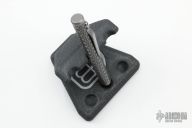 "I am a folder maker. While there will always be the occasional fixed blade, folders are my passion. The steels I enjoy working with include CPM154, ATS-34, 440C, S30V, and Stainless Damascus from Devin Thomas. All of the metal parts on my knives that can be Titanium are Titanium including frames, liners, thumbstuds, bolsters, clips and spacers. Pretty much everything except for the blade. I often anodize a substantial portion of my titanium, and can get a deep green that few makers succeed at. As far as handle materials go, I mostly use Carbon fiber, G10, or Micarta. I use large bronze pivot bushings in all of my folders, and either Nylatron or Bronze washers. All of my parts are made in-house except the screws. I have an old Bridgeport Mill, an older Logan Lathe (1943), a Hardcore grinder, and various other tools, lots of them made by myself. I also do all of my own Heat treating in an EvenHeat Oven." My knives have won several major awards, including Best Tactical Folder at the Blade Show 2011.