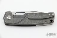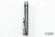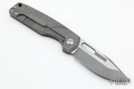 This Trilobite by Jason Stout features a tumble finished blade with milled bevels, fullers and a thumbhole. The handle has a milled and tumbled titanium frame, matching tip up pocket clip and a dark tumbled and a D2 steel backspacer. Nice detent, lockup and blade seating. Includes a padded zippered case and COA.  New from maker!