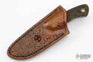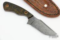 This Model 4 by Rainy Day Knives features a stonewashed blade with .133" blade stock and 1.036" blade depth, full tang construction. The handle has vintage rag micarta scales with red liners. Includes leather front pocket sheath with clip and COA. New from maker at the 2022 Blade Show Texas.