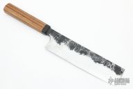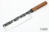 This custom Nakiri by Nate Summers features a hand forged blade with hidden tang construction, .165" Blade Stock and 2.1" Blade Depth. The handle features a wood grip with a black canvas micarta ferrule. New from maker!