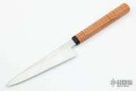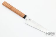 This custom Petty by Nate Summers features a hand rub satin finish blade with hidden tang construction, .071" Blade Stock and 1.158" Blade Depth. The handle features a wood grip with a black canvas micarta ferrule. New from maker!