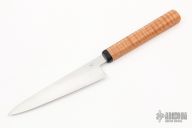 This custom Petty by Nate Summers features a hand rub satin finish blade with hidden tang construction, .068" Blade Stock and 1.118" Blade Depth. The handle features a wood grip with a black canvas micarta ferrule. New from maker!