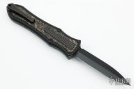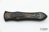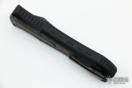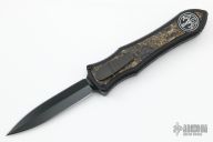 This knife is a Deadlock Model C by Grant and Gavin Hawk. It has a double-edged black blade. The handle has a carbon fiber and black aluminum frame with a tip down spring clip, titanium. The thumb slide on the handle is also titanium and handle has titanium overlays. Comes with a padded zippered case, lip balm and tool. Grant and Gavin Hawk set out to create a double action OTF with no blade play.... They did it, NO blade play.  New from Maker!