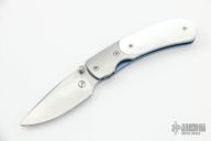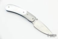 The knife has a satin finish blade, satin titanium bolsters, and abalone scales. Includes original box, pouch, and paperwork. Has a few light scratches, otherwise great condition.
