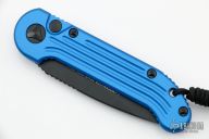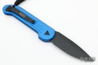 This LUDT side opening automatic by Microtech has a black finished blade with a standard edge and a contoured blue aluminum frame. Stainless steel clip. Dated 01/2022 and serial number 25635. Comes with original box and papers. Excellent condition.