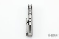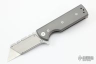 The CHUB (Chaves Handy Utility Blade) Flipper from Ramon Chaves features a replaceable utility blade. The handle has a stonewashed titanium frame with a matching reversible skull pocket clip. Comes with the original box and a second titanium pocket clip.  Excellent condition.