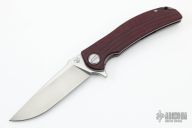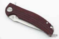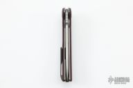 ThisSoft Overkill by Shirogorov and RJ Martin features a M398 blade with notched thumbrest and a flipper. The handle has a blasted and milled titanium frame,micarta scales, darkened titanium pivot collars, backspacer and tip up clip with hidden screws. Has RBS, nice detent, lockup and blade seating. Excellent condition. #272/300. Comes with original box and papers.