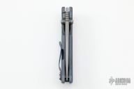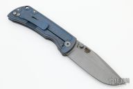 This MAC2 features a bead blast and tumble finish drop point blade with dual thumbstuds and a notched thumbrest.  The handle features an anodized and distressed titanium frame with a matching tip up pocket clip.  Includes box and papers.  New from Maker!