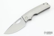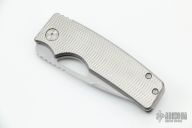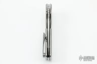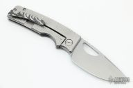 This knife by the OZ Machine Company features a stonewashed Magnacut blade with a false top edge, thumbhole and notched thumbrest.  The handle features a "Golf Putter" milled titanium frame with a ZircuTi tip up pocket clip and backspacer.  Includes box and COA dated 5-26-22. New from maker at the 2022 Blade Show.