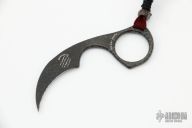 This Diagnostic Neck Knife from Bastinelli features a karambit style PVD coated chisel ground blade with false top edge and notched thumb rest. The integral style incorporates a handle with a pronounced index finger choil and 1-inch finger hole for secure grip. Lanyard hole, lanyard and bead provide for increased grip/retention. Includes kydex neck sheath and a padded zippered case. New from maker!