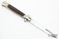 Angelo Campolin Sr. was born in 1923 in Maniago, Italy. He worked on perfecting his knife making skills before WWII and at this time made his first switchblades. After the war, in 1947 he started his company and made 30 stilettos with the marking “Angelo Campolin”. In the 1970’s Angelo’s son Gianni started to work in the company and they were specializing in folding hunting knives and also manual folding stilettos for the Robert Klaas company in Solingen Germany with their Kissing Cranes mark. In 2002 American switchblade collectors Dan Fuller, Brad West, and Tim Zinser were visiting Maniago and enjoying a few glasses of wine in a bar with Angelo Jr. and Gianni. The discussion was about a new name for some knife projects they wanted to pursue. It was Brad West that suggested the tang stamp should be AGA, for Angelo, Gianni, Angelo, thus representing three generations in the knife making business. The Campolins liked it and it stuck. In the beginning it was just a few items, but grew to the point where now there are 12 models and different scale options. The goal has been to offer quality switchblades using the old methods and traditions. Being a collector himself, Angelo Jr. knows what others like. The company headquarters has moved to Austria with production still in the original Maniago shop, as well as the others in Maniago that produce the knives for A.G.A. Campolin.