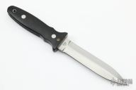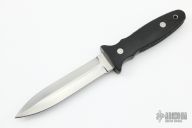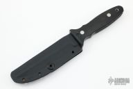 This Model 24 Dagger by Bob Terzuola features a hand rub satin finished double edged blade, .181" blade stock and 1" blade depth, hidden tang construction. The handle has a black linen micarta grip with a red line down the center, has a lanyard hole. Comes with a kydex sheath with belt clip. Excellent condition.
