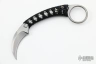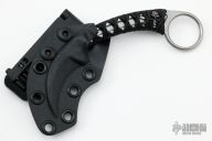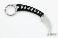 This PiKa is a Doug Marcaida design produced by Bastinelli Knives, it features a chisel ground stonewashed hawkbill blade with notched thumbrest and swedge, .150" blade stock and .678" blade depth, full tang construction. The handle has black wrap with a bronzed menuki. Comes with kydex sheath with belt clip.  New from maker.